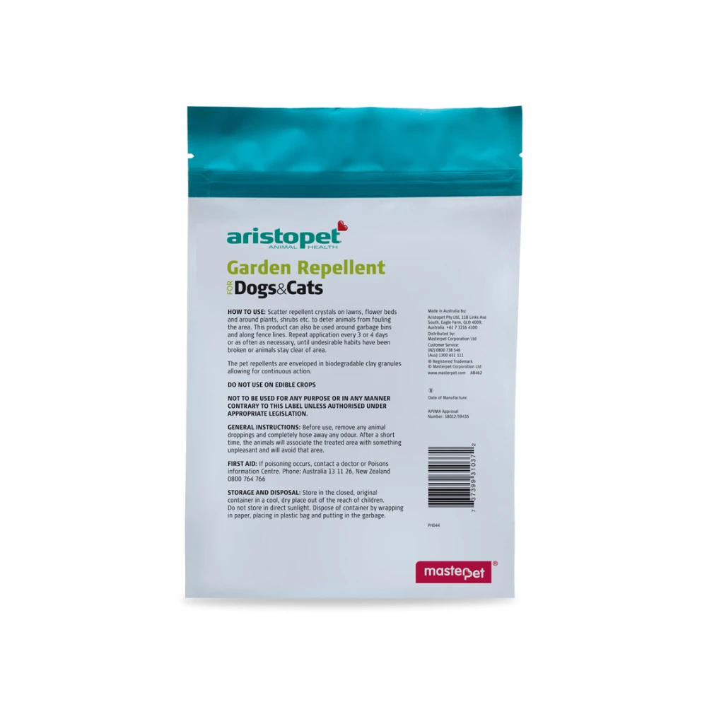 Revitalize your garden sanctuary with Aristopet Garden Repellent for Dogs & Cats 400g, a powerful deterrent against unwanted pet behavior. Crafted with innovative repellent crystals, this solution effectively discourages pets from soiling and marking in undesired areas, preserving the beauty and cleanliness of your outdoor space. With its biodegradable clay granules and environmentally friendly ingredients, this repellent ensures safe and continuous action, offering peace of mind for pet owners seeking a harmonious garden environment.