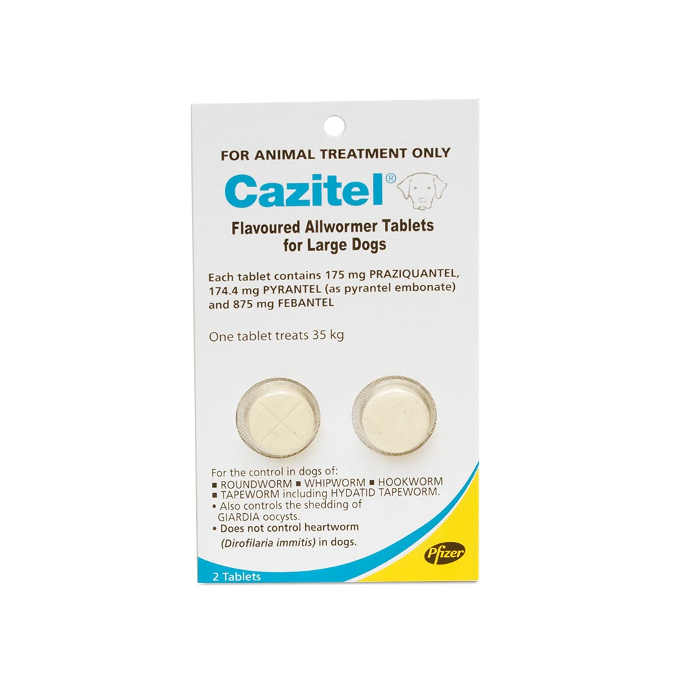 Cazitel for Dogs is a multispectrum, flavoured allwormer tablet for the control of 12 species of intestinal worms in dogs including roundworm, hookworm, whipworm and tapeworm (including hydatid tapeworm). It also controls the shedding of giardia oocysts.