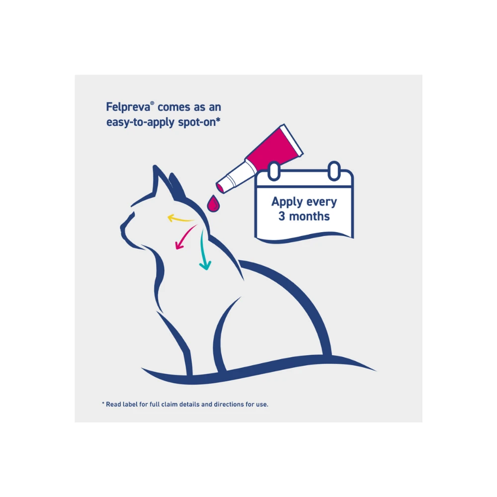 - Opt for application at the base of the skull to reduce the cat’s ability to lick off the product.