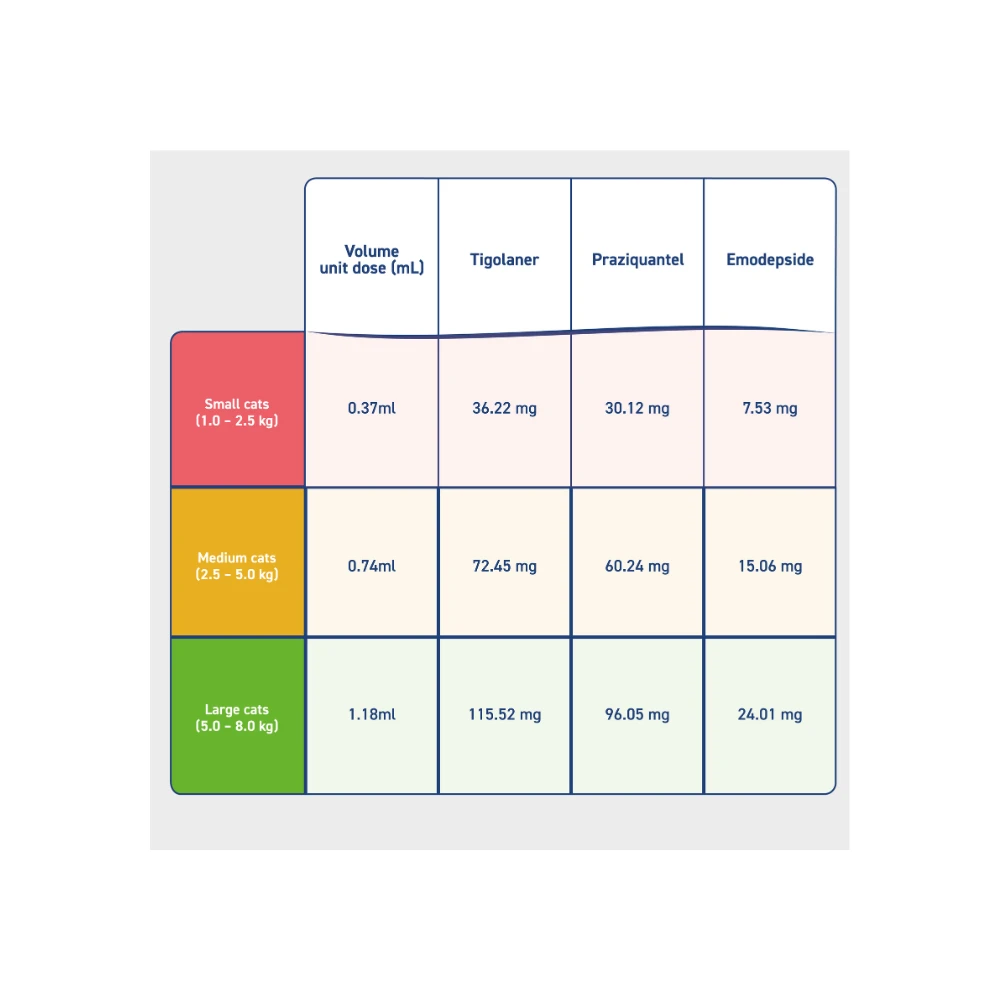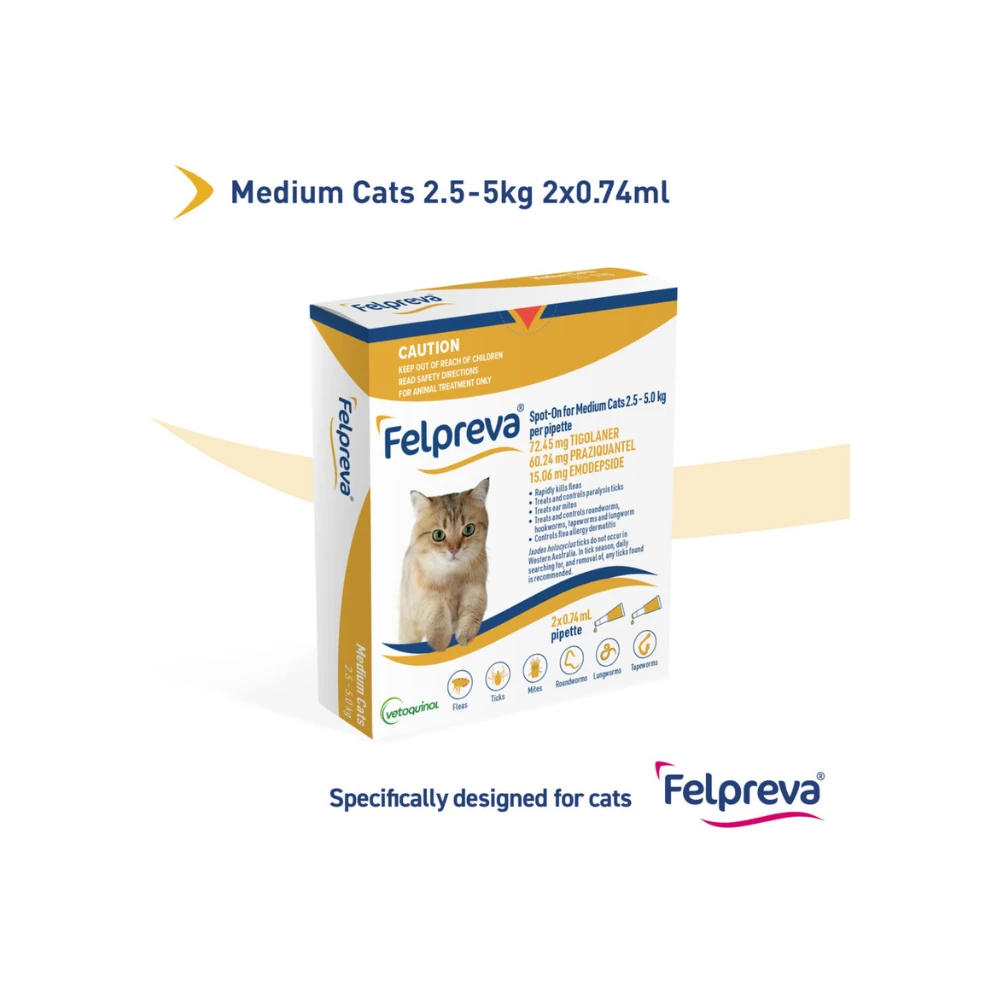 Felpreva doesn’t stop at fleas and ticks it’s a comprehensive defense against ectoparasites, cestodes, nematodes, roundworms, tapeworms, lungworms, and ear mites, all packed into a single pipette. Give your feline friend the care they deserve with Felpreva, setting a new standard in feline parasite protection.