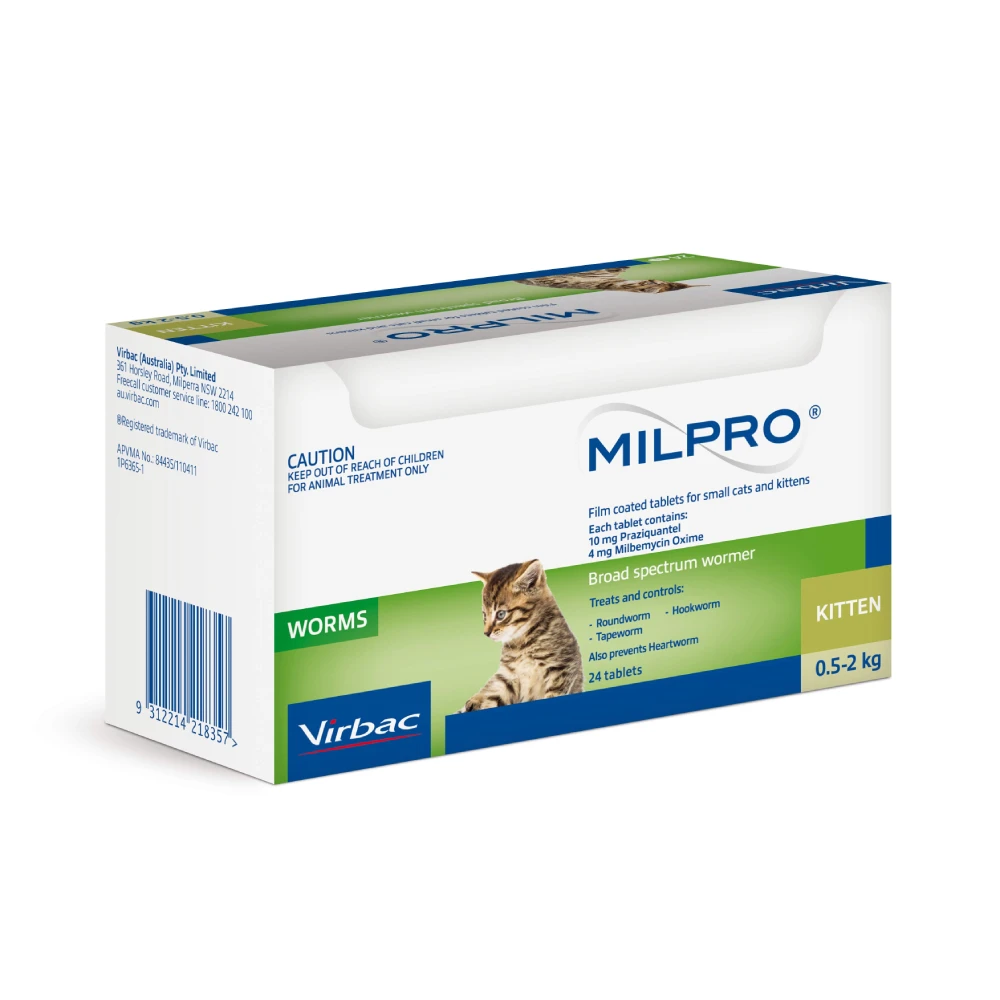 - Treats and controls all major intestinal worms found in cats and dogs, including roundworm, hookworm, whipworm, and tapeworm, including hydatids. When used monthly, Milpro prevents heartworm.