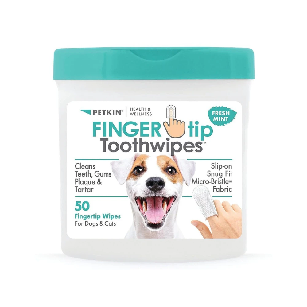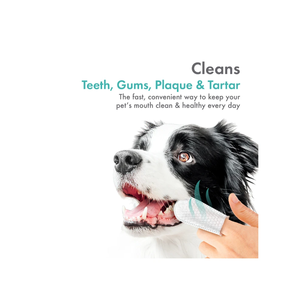 - Slip a Petkin Fingertip Tooth Wipe onto your index finger.