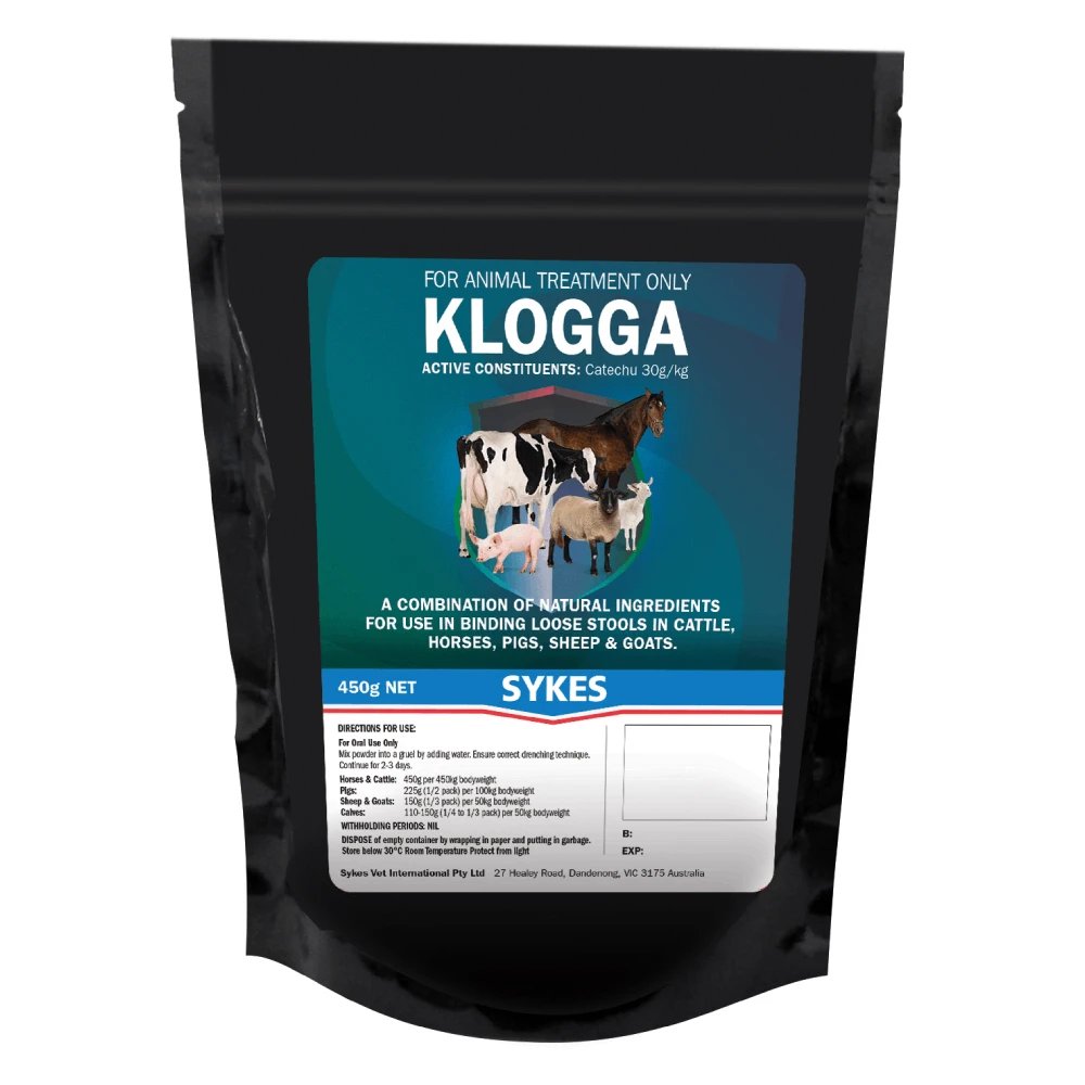 Sykes Klogga Sachet 450g reduces diarrhoea in farm animals including pigs, cattle, sheep and goats.