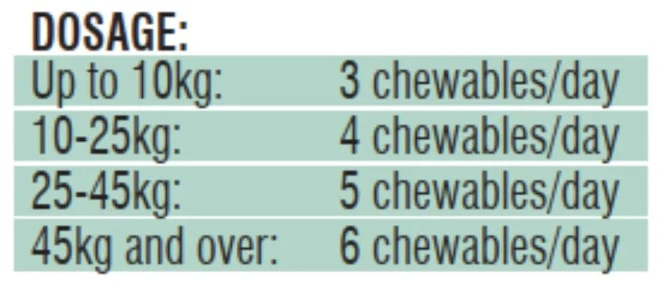 Each bottle contains 120 tablets, ensuring an ample supply for your furry companion. The recommended dosage is based on your dog’s weight, with general guidelines provided on the packaging or as advised by your veterinarian. Simply administer the tablets according to the instructions to support your dog’s joint health effectively.