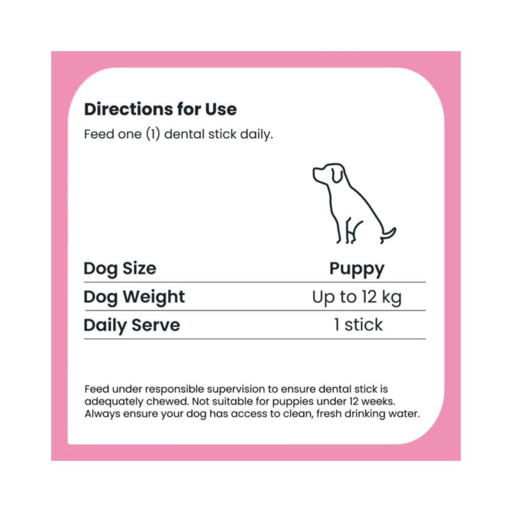 Administer one ZamiPet Dental Stick to your puppy daily as a dental care treat. Always ensure a supply of fresh drinking water is accessible. Just like with any edible product, it’s important to supervise your puppy while they indulge in the dental stick to prevent choking or unforeseen reactions.