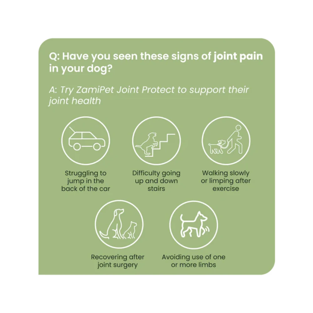 - Joint Nurturing: The cutting-edge composition of ZamiPet Joint Protect Dog delivers precise joint and cartilage care for canines of all sizes and breeds.