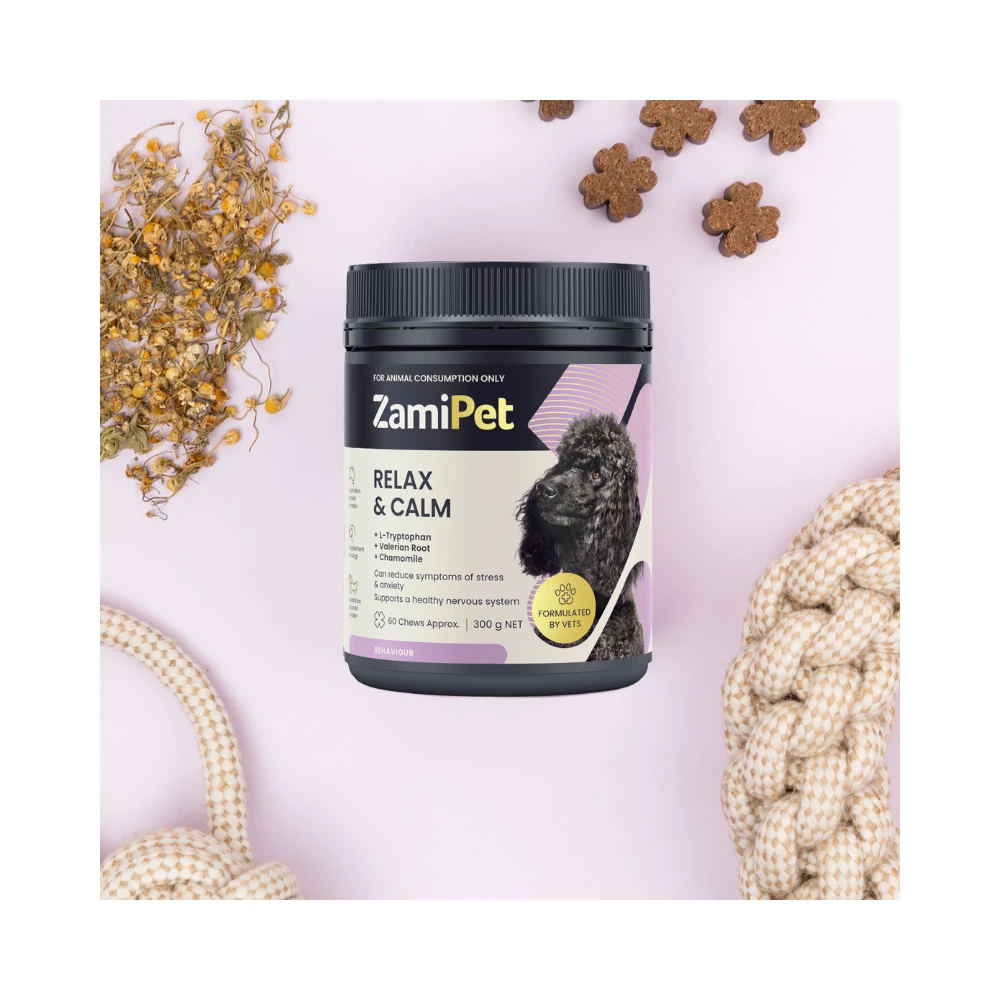 ZamiPet Relax & Calm Dog offers the ideal solution for helping your cherished companion achieve serenity and tranquillity. Crafted with care, these delightful chews are specially developed to foster relaxation and a sense of calm in dogs of all sizes. Whether it’s dealing with thunderstorms, separation anxiety, or challenging circumstances, ZamiPet Relax & Calm Dog is your answer for providing comforting assistance to your furry friend.