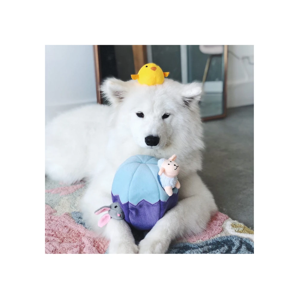 This Easter, treat your pup to the ZippyPaws Zippy Burrow Easter Egg and Friends for an egg-cellent adventure! Say goodbye to boredom as your furry friend embarks on a thrilling game of hide-and-seek with the bunny, sheep, and chick tucked inside the plush egg.